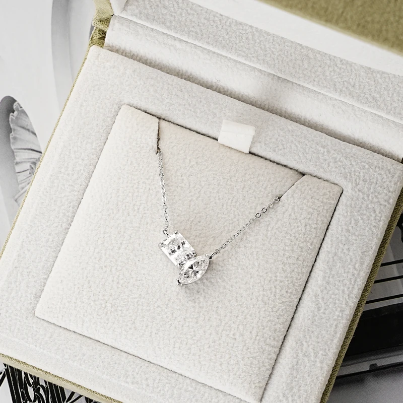 OXTAO Real 925 Silver Rectangular Oval Cut 3.0CTMoissanite Pendant Necklace Adjustable Clavicle Chain Necklace Fine Jewelry Gift